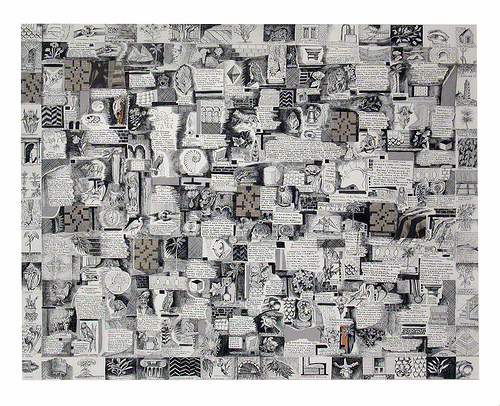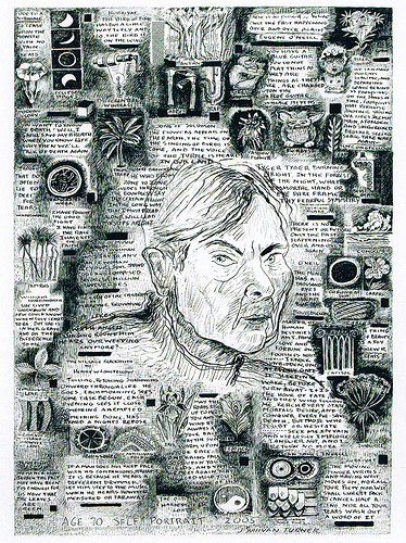 30” x 23”. India Ink on paper + Collage. My latest series “messages” has the feel of 3/Dimension, but is worked on paper, with pen and India ink, combining poetry/multiple drawings/ and collage. The poems are combined with the images that the world confronts us with, to create a universal statement.