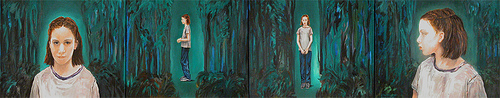 16” x 81” Oil on 4 attached canvases. I took a series of photographs of a young 12 year old girl named Elizabeth and then used them to create this oil painting. Elizabeth is a trouble young woman and I included this feeling in this painting.